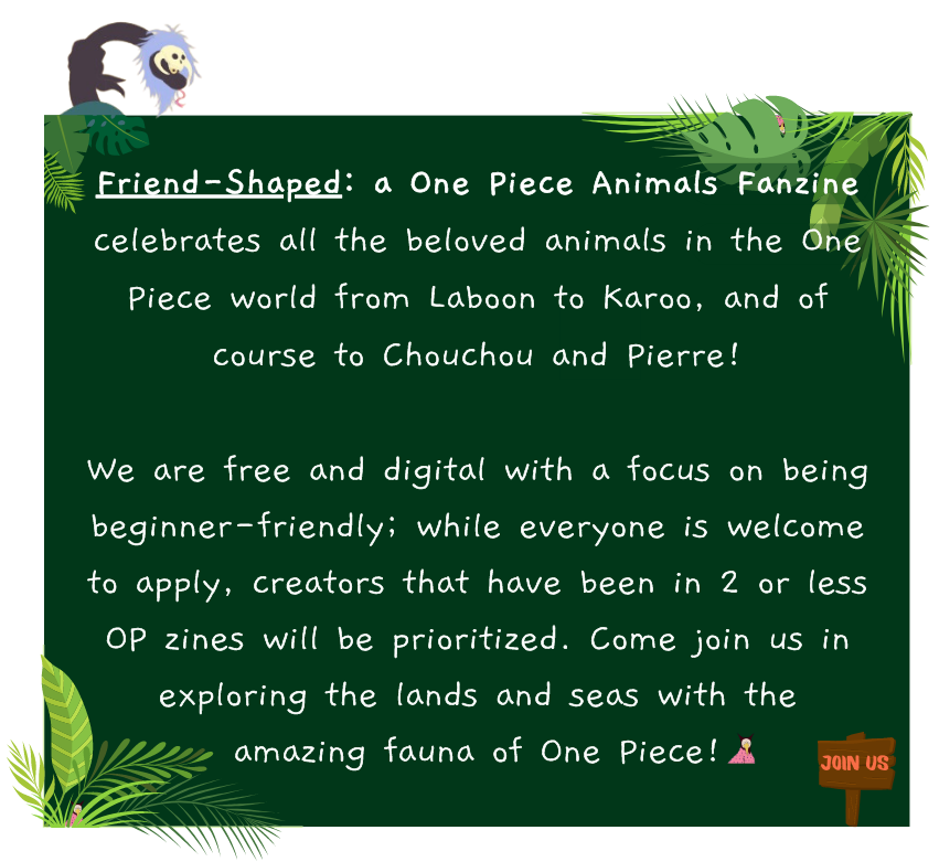 I've always been a big animal lover, and One Piece is no different! The diversity is huge, and there are so many fascinating and funny species, I consider it a very important part of the worldbuilding of One Piece; everyone remembers at least one from each arc! They deserve more love!